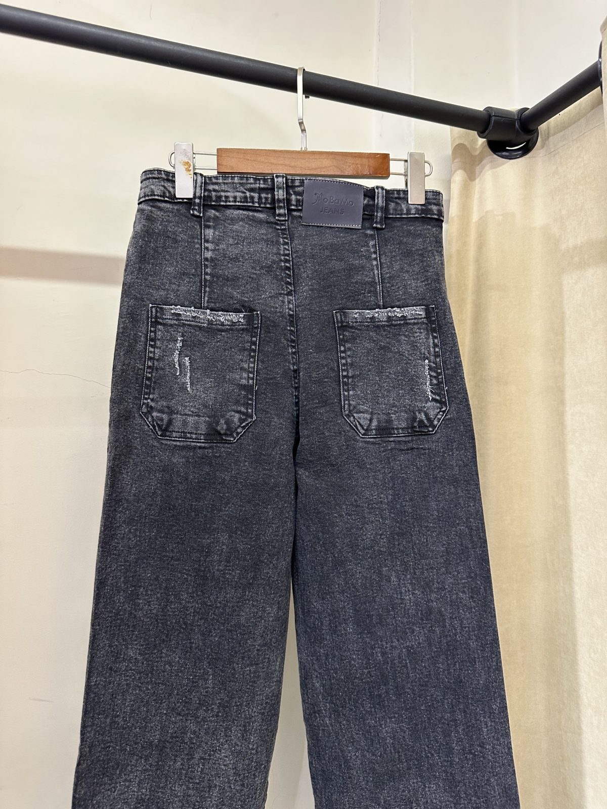 شلوار جین نیم بگ ذغالی کد 4064/3