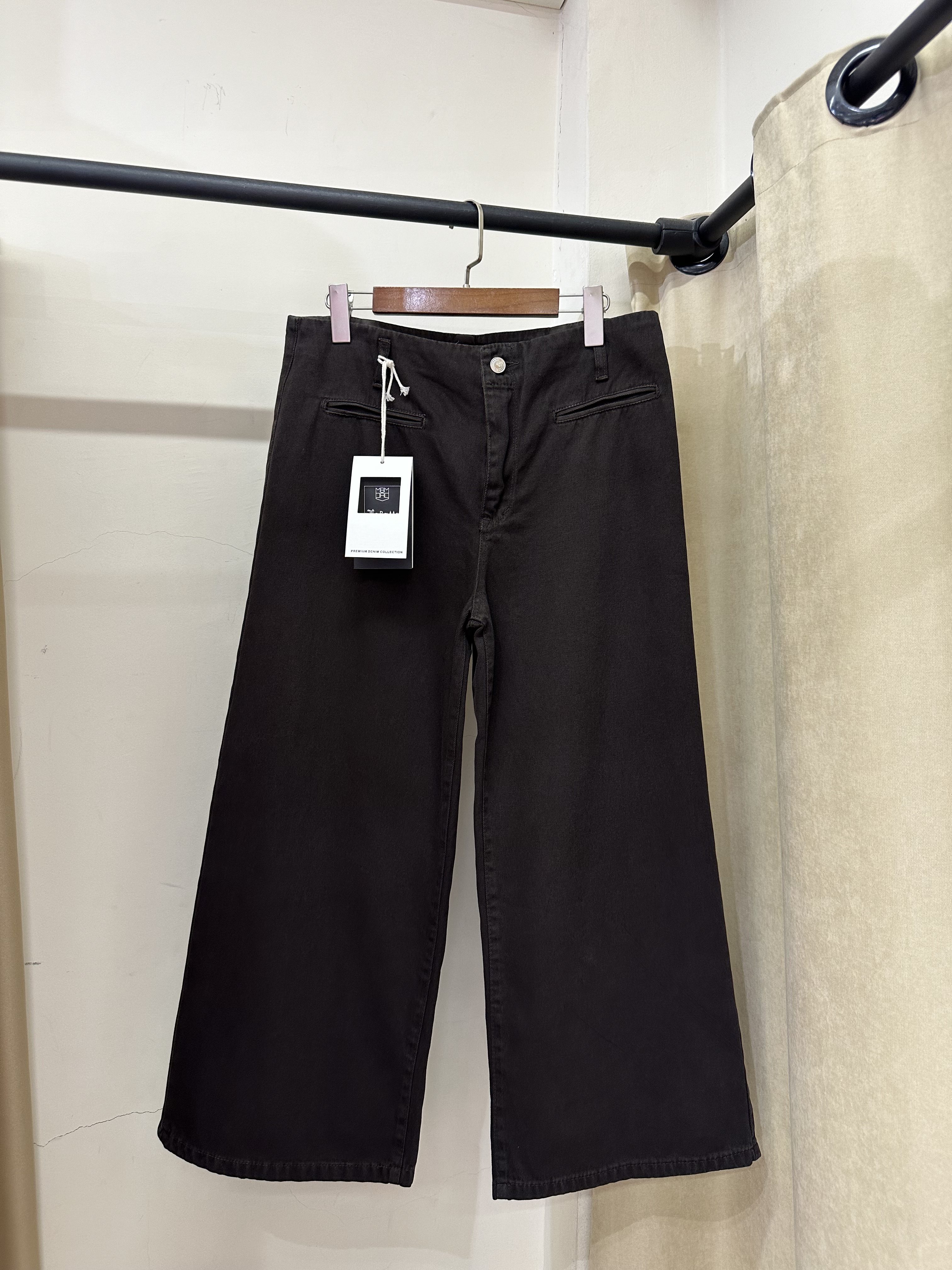 شلوار واید لگ کتان قهوه ای کد 4018/6